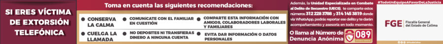 Abr 22, 2026 CUMPLIMENTA FGE OCHO ÓRDENES DE APREHENSIÓN POR DIVERSOS DELITOS Abr 22, 2026 UEPC COLIMA SE PREPARA PARA PROTEGER A LA POBLACIÓN EN TEMPORADA DE LLUVIAS; SE PRONOSTICAN DE 18 A 21 CICLONES EN EL PACÍFICO Abr 22, 2026 EDUCACIÓN COLIMA FOMENTA IDENTIDAD Y VALORES CÍVICOS EN CONCURSO DE INTERPRETACIÓN DEL HIMNO NACIONAL MEXICANO Abr 22, 2026 SUBSEJUV Y UIC FORTALECEN ALIANZA EN FAVOR DE ESTUDIANTES COLIMENSES Abr 22, 2026 GOBIERNO DEL ESTADO DE COLIMA FORTALECE ACCIONES GRATUITAS DE PREVENCIÓN Y ATENCIÓN A ADICCIONES EN JÓVENES Abr 22, 2026 INDIRA: FERIAS DE PAZ SIRVEN PARA QUE JÓVENES SEPAN A QUÉ INSTITUCIONES PUEDEN ACUDIR EN DIVERSAS SITUACIONES Abr 22, 2026 TECNM-COLIMA PARTICIPA EN LA JORNADA NACIONAL DE TEQUIOS POR LA PAZ Abr 22, 2026 SSPC Y MARINA DETIENEN A GENERADOR DE VIOLENCIA EN MANZANILLO, CONTABA CON ORDEN DE APREHENSIÓN Abr 22, 2026 ANUNCIA INDIRA VIZCAÍNO ‘MI COLIBECA PARA EL FUTURO’, PARA GARANTIZAR INSCRIPCIÓN GRATUITA A UNIVERSIDADES PÚBLICAS CUMPLIMENTA FGE OCHO ÓRDENES DE APREHENSIÓN POR DIVERSOS DELITOS UEPC COLIMA SE PREPARA PARA PROTEGER A LA POBLACIÓN EN TEMPORADA DE LLUVIAS; SE PRONOSTICAN DE 18 A 21 CICLONES EN EL PACÍFICO EDUCACIÓN COLIMA FOMENTA IDENTIDAD Y VALORES CÍVICOS EN CONCURSO DE INTERPRETACIÓN DEL HIMNO NACIONAL MEXICANO SUBSEJUV Y UIC FORTALECEN ALIANZA EN FAVOR DE ESTUDIANTES COLIMENSES GOBIERNO DEL ESTADO DE COLIMA FORTALECE ACCIONES GRATUITAS DE PREVENCIÓN Y ATENCIÓN A ADICCIONES EN JÓVENES INDIRA: FERIAS DE PAZ SIRVEN PARA QUE JÓVENES SEPAN A QUÉ INSTITUCIONES PUEDEN ACUDIR EN DIVERSAS SITUACIONES TECNM-COLIMA PARTICIPA EN LA JORNADA NACIONAL DE TEQUIOS POR LA PAZ SSPC Y MARINA DETIENEN A GENERADOR DE VIOLENCIA EN MANZANILLO, CONTABA CON ORDEN DE APREHENSIÓN ANUNCIA INDIRA VIZCAÍNO ‘MI COLIBECA PARA EL FUTURO’, PARA GARANTIZAR INSCRIPCIÓN GRATUITA A UNIVERSIDADES PÚBLICAS REFUERZA ROSI BAYARDO EL SERVICIO DE AGUA CON MAQUINARIA Y EQUIPO COMENZARON TRABAJOS DE PODA Y MANTENIMIENTO EN CAMELLONES DE SEVILLA DEL RÍO INICIA TEY DESAZOLVE DE 122 ALCANTARILLAS EN VILLA DE ÁLVAREZ REFUERZAN IGUALDAD CON CAMPAÑA Y SERVICIOS INTEGRALES PARA MUJERES EN LA CAPITAL FORTALECEN UNIVERSIDADES MEXICANAS COLABORACIÓN CON LA UNIVERSITAT JAUME I TECNOLOGÍAS INTELIGENTES, CLAVE PARA ENFRENTAR CRISIS EN SERVICIOS DE SALUD Entradas antiguas