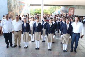 Ante las diez escoltas representantes de cada municipio de la entidad, funcionarias, funcionarios y representantes sindicales, Adolfo Núñez reconoció el entusiasmo, disciplina y compromiso de las y los alumnos, subrayando que su llegada a la etapa estatal constituye ya un logro meritorio tras haber obtenido el triunfo en la fase municipal. Reconoció al personal docente, directivo, administrativo, de supervisión y a las familias, cuyo acompañamiento es fundamental para el fortalecimiento de la cultura cívica.