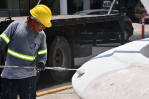 Esta escultura, que fue construida durante el mandato del presidente municipal Elías Zamora Verduzco en 1984, presentaba un deterioro notable, por lo que la ASIPONA y el Ayuntamiento de Manzanillo acordaron su restauración que ha dado inicio esta semana.
