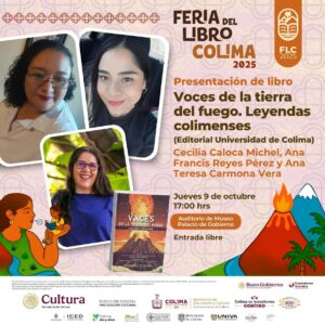 Por su parte, la Universidad de Colima presentará los libros ‘La tienda de pociones’ de Francisco Gileta (martes 7 a las 17:00 hrs.); y ‘Voces de la tierra del fuego. Leyendas colimenses’, coordinado por Cecilia Caloca Michel, con las participaciones de Ana Francis Reyes Pérez y Ana Teresa Carmona Vera (jueves 9 a las 17:00 horas).
