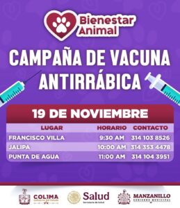 El Gobierno de Manzanillo, encabezado por la presidenta Rosi Bayardo, iniciará una campaña de vacunación antirrábica gratuita para perros y gatos, con el objetivo de prevenir la rabia y acercar este servicio a las comunidades del municipio.
