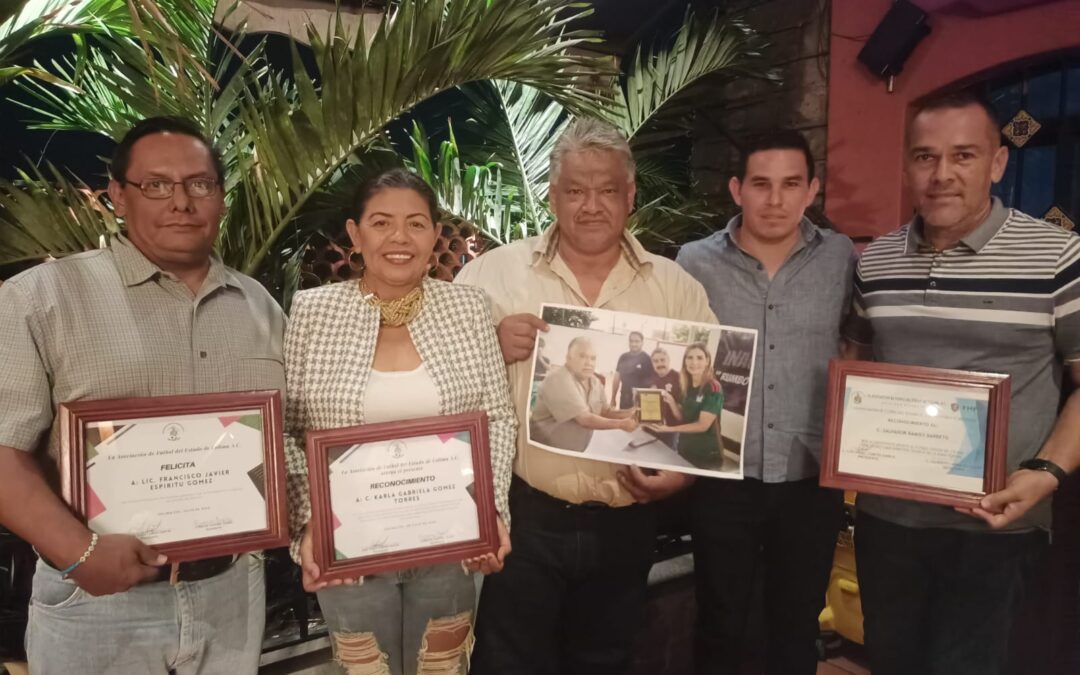 El Presidente de la Asociación de Fútbol del Estado de Colima, Ángel Cabuto; acompañado de algunos presidentes de liga, el jueves por la noche entregó tres reconocimientos a reporteros deportivos y a entrenador de fútbol en conocido restaurante.