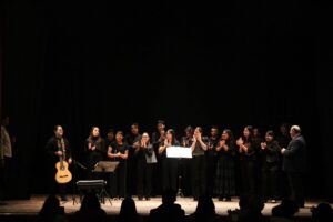 Uno de los momentos más destacados de la noche fue la ejecución del Romancero Gitano Op. 152, de Castelnuovo-Tedesco, una obra monumental compuesta para coro y guitarra, en la que Juan Ramón Canchola brilló como solista. La obra, inspirada en los textos del poeta Federico García Lorca, fue además enriquecida por una charla del musicólogo español Mtro. Alberto Hurtado Giménez, quien compartió una reflexión titulada “Federico y el Romancero Gitano, según Tedesco”, aportando contexto literario y musical al repertorio.