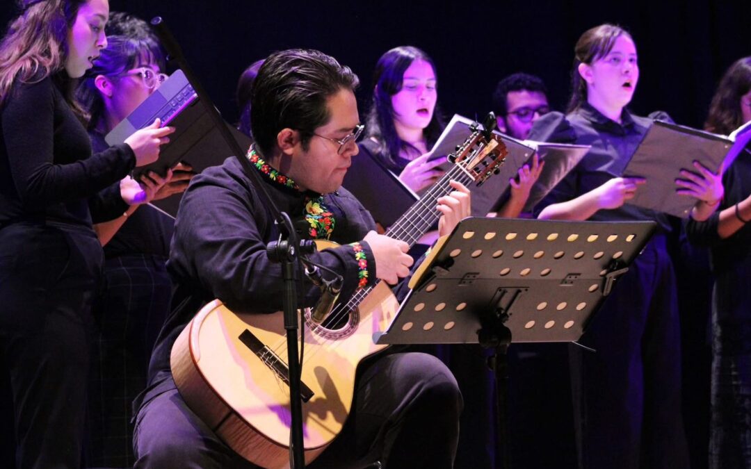 Hace unos días, el majestuoso teatro “José Rosas Moreno” de Lagos de Moreno, Jalisco, se convirtió en escenario de un emotivo concierto titulado “La guitarra y el canto”, evento que reunió el talento del Coro del Instituto Universitario de Bellas Artes (IUBA) de la Universidad de Colima y del guitarrista solista Juan Ramón Canchola, alumno de dicho Instituto, en una velada de música coral y guitarra clásica que fue aclamada por el público.
