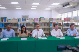 Christian Jorge Torres Ortiz Zermeño, rector de la Universidad de Colima, se reunió este jueves por la tarde con medios locales de Manzanillo, para dar a conocer los pormenores, características y requerimientos del nuevo Bachillerato General en Línea, que comenzará sus actividades en el mes de agosto de este año. La rueda de prensa tuvo lugar en la Biblioteca del campus de Valle de las Garzas, en esta ciudad porteña.