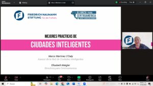 Para finalizar, comentó que a través de la Red de Ciudades Inteligentes se llevan a cabo talleres, diplomados, mentorías, BootCamps, manuales e incluso proyectos piloto. “Hoy tenemos a más de 20 ciudades de cinco países de Centroamérica y México participando activamente en el desarrollo de proyectos piloto y en la implementación de políticas públicas muy concretas en materia de ciudades inteligentes. Una ciudad inteligente no es sólo tecnología, es gobernanza transparente y mejora la calidad de vida”, concluyó.