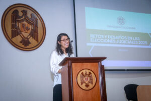 Por su parte, la directora de Derecho, Jessica Cristina Romero Michel, habló de la importancia de estos foros, en los que se hablará del nuevo modelo de elección y donde no son los partidos quienes proponen candidaturas. “Ahora son los ciudadanos y las ciudadanas con una licenciatura en derecho a quienes les tocará someterse a la voluntad popular”.