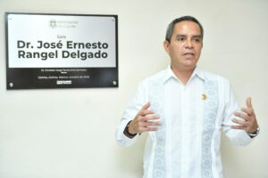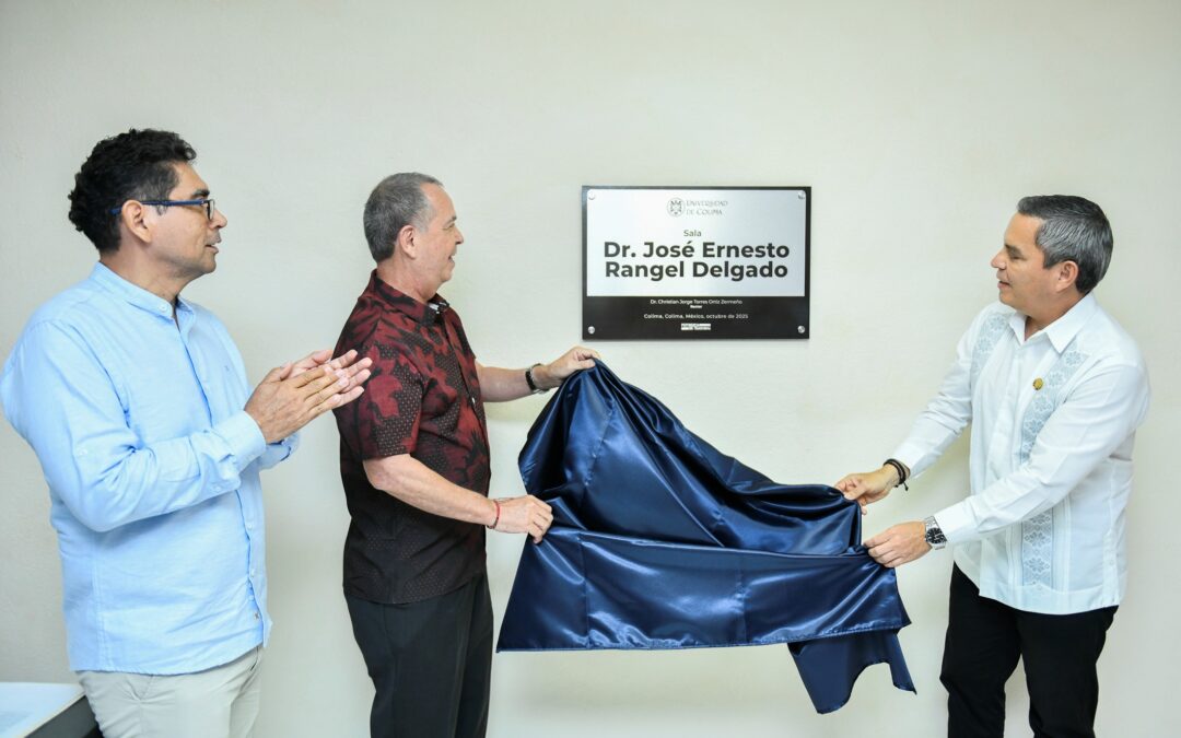 Finalmente, develaron la placa en la sala de juntas de la CUEICP-CEAPEC, que llevará el nombre de José Ernesto Rangel Delgado, pionero en las investigaciones sobre la cuenca del pacífico en el estado, la región y el país.
