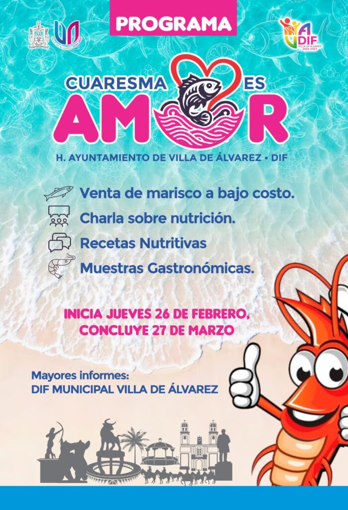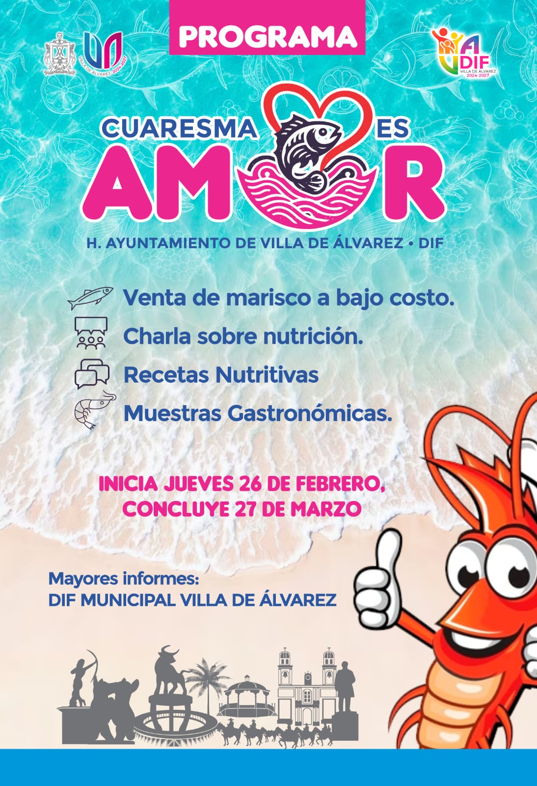 A través de un video difundido en su página de Facebook, la Alcaldesa señaló que con Cuaresma es Amor, programa que iniciará de manera formal el próximo jueves, todos los días lunes, jueves y viernes de Cuaresma se impartirán cursos de elaboración de ceviche de soya, esto en 20 espacios diferentes del municipio de Villa de Álvarez, incluyendo las comunidades rurales.