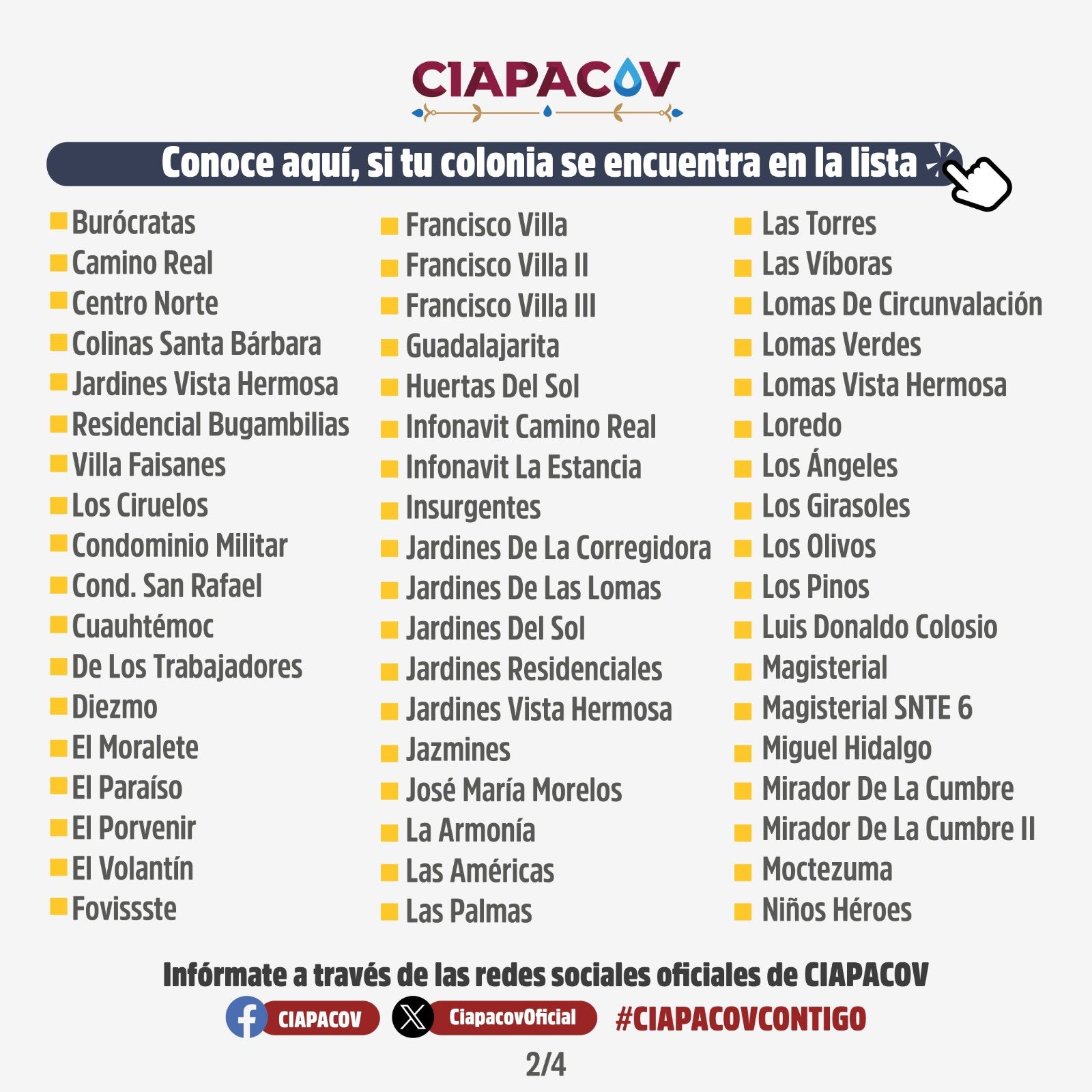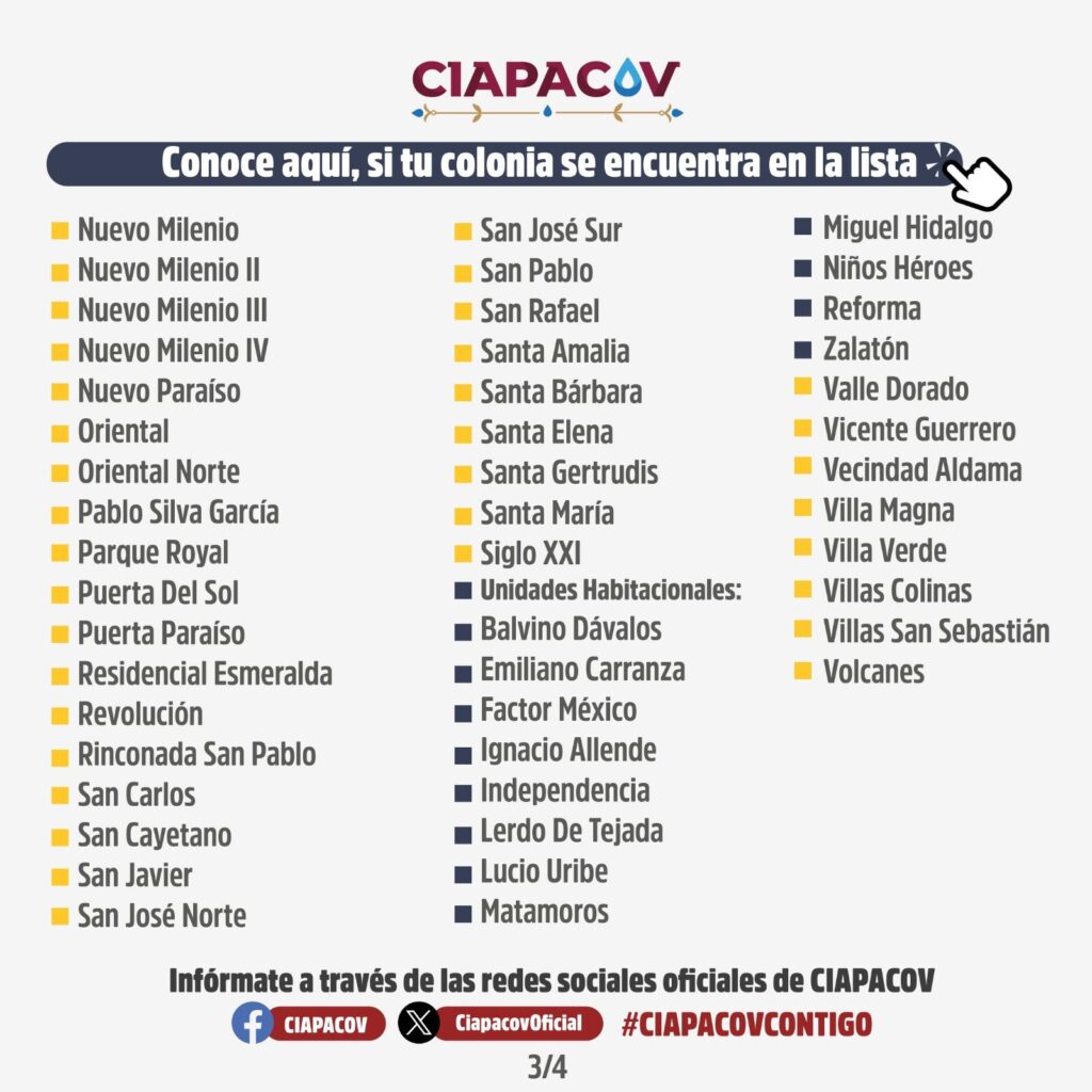++Informaron que serán varias colonias del municipio capitalino, principalmente del norte, que se verán afectada y llamaron a la población a tomar medidas y racionalizar el uso del vital líquido para evitar complicaciones.
