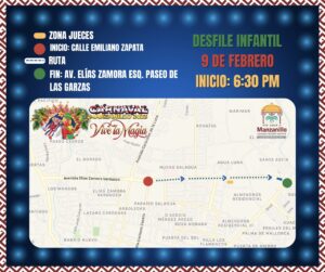 Y es que en este 2023 se contempla, para el primer día, el desfile infantil, que será el jueves 9 de febrero a las 6:30 de la tarde. Éste comenzará en el cruce de la avenida Elías Zamora Verduzco con Emiliano Zapata y culminará sobre esa misma avenida, pero en la esquina con Paseo de las Garzas.