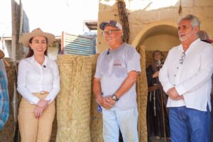 Villa de Álvarez, Col.- La Presidenta Tey Gutiérrez Andrade realizó la entrega simbólica de 490 petates nuevos a los tabladeros de la Monumental Plaza de Toros La Petatera, acto en el que reconoció el excelente trabajo que realizan los constructores para edificar la Artesanía Más Grande del Mundo.