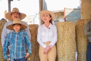 En las instalaciones de lo que será el principal foro de los Festejos Charro Taurinos de Villa de Álvarez 2026, la Alcaldesa dijo sentirse muy honrada de tener la posibilidad de apoyar desde la Administración Municipal en la construcción de la plaza, detallando que se dotará a cada uno de los 70 tabladeros con 7 petates nuevos, los cuales serán utilizados para cubrir respaldos y los mandiles (parte inferior de las gradas).