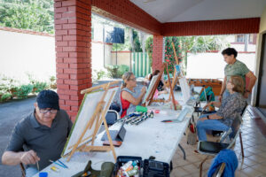 Por su parte, Lupita Jiménez, participante desde hace un año, expresa con emoción: “Llegué sin saber nada de óleo. Me recibieron con tanto cariño que decidí quedarme. Pintar me da paz, me fortalece. Es una sensación de libertad”.