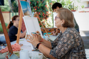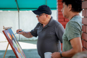 Por su parte, Lupita Jiménez, participante desde hace un año, expresa con emoción: “Llegué sin saber nada de óleo. Me recibieron con tanto cariño que decidí quedarme. Pintar me da paz, me fortalece. Es una sensación de libertad”.