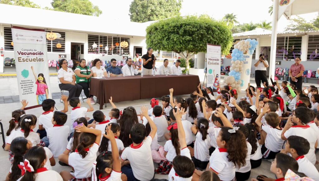 El Gobierno del Estado de Colima, a través de las secretarías de Salud y de Educación y Cultura, puso en marcha la Campaña de Vacunación en Escuelas, que realizan las instituciones del Sector Salud como parte de la estrategia Detección y fortalecimiento de esquemas de vacunación para niños y niñas de nivel primaria, que busca la recuperación de coberturas de vacunación en escolares.