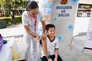 Al acto realizado en el Instituto Cambridge también asistieron representantes del IMSS Bienestar, IMSS e ISSSTE y la coordinadora estatal del Servicio Nacional de Salud Pública, María Guadalupe Jacobo Ramírez; la directora de primaria de este centro educativo, Maya Manuela Pintor Chávez, dijo que en este plantel están abiertos a las campañas que convocan las secretarías de Salud y Educación porque van en beneficio de sus estudiantes.