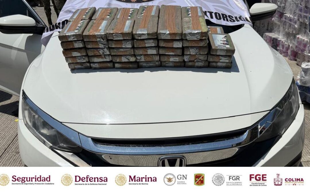La Mesa de Coordinación Estatal para la Construcción de la Paz y la Seguridad en Colima, informa que elementos del Ejército Mexicano en coordinación con personal de la Secretaría de Marina y de la Secretaría de Seguridad y Protección Ciudadana federal y estatal, se aseguró un cargamento con más de 65 kilogramos de droga con las características de cocaína, en el filtro de seguridad instalado en Boca de Apiza, en el municipio de Tecomán.