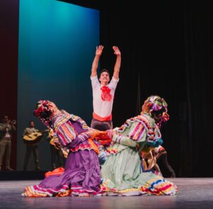 La jornada artística incluyó cuadros emblemáticos como “Los chinacos”, “Jaraberos de Nochistlán”, “El corrido de Rosita Alvírez”, “Ritmos del Norte”, “Zacatecas”, “Veracruz” y un vibrante cierre con Jalisco, acompañado por el Mariachi Universidad de Colima y el Coro del Ballet, que interpretó trova yucateca y sones tradicionales de distintas regiones del país.