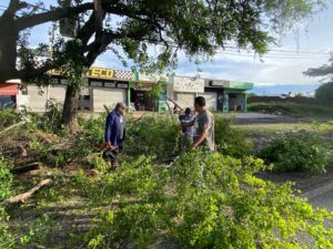 Ante el aviso recibido por vecinos de la colonia, la brigada especializada se trasladó al lugar para evaluar el ejemplar. Tras la inspección técnica, se procedió a la poda controlada y remoción de ramas inestables, así como a la recolección y disposición segura del material vegetal. Durante la intervención se implementaron medidas de seguridad para evitar afectaciones a peatones y vehículos mientras se realizaban las labores.