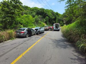 La tarde de este sábado 7 de septiembre se registró un accidente de tránsito entre dos vehículos sobre la carretera Intermunicipal Villa de Álvarez-Minatitlán, muy cerca del balneario Agua Fría.