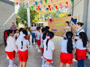 A lo largo de la jornada, las y los pequeños participaron en talleres y dinámicas coordinadas por el estudiantado de bachillerato, quienes planearon y guiaron actividades como juegos de integración, elaboración de papel reciclado y pegamento natural, diseño de carteles y mural ecológico, dramatización de un cuento y proyección de un video sobre el tema.