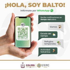 La UEPC reitera su invitación a consultar fuentes oficiales y seguir las recomendaciones preventivas, suscribirse al canal ‘Balto UEPC Colima’ en WhatsApp es gratuito y puede hacerse a través del enlace https://whatsapp.com/channel/0029VafzepNGZNCr9Yl4Ut2F sólo se debe activar las notificaciones para recibir información en tiempo real.