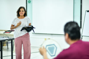 Como parte de las Jornadas Académicas correspondientes al periodo intersemestral de verano 2025, durante cinco días, Nayeli, Patricia Ayala y Heliodoro Santos, artistas visuales y docentes, impartieron prácticas visuales plasmadas en plataformas y lienzos a un grupo de casi 15 universitarios con perfiles diversos, entre ellos administrativos de las áreas de diseño, medio ambiente, así como a docentes de Psicología y Artes.