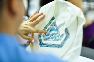 “Me funciona mucho porque practico la meditación y así puedo hacer una meditación activa, inducirla a partir de esta actividad de bordar el mismo patrón mecánicamente y de manera repetitiva. El cuerpo se acostumbra a repetir ciertos movimientos, la mirada está presente y la atención también”, compartió.