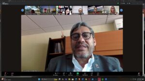 En la conferencia en línea también estuvieron, por la UdeC, Joel Hino Jr., secretario general, Priscilia Álvarez, directora general de Recursos Humanos, Francisco Ventura, representante ante la Región Centro-Occidente de ANUIES y secretario técnico. Por parte de la RCO ANUIES estuvieron: Samantha Narváez, secretaria técnica de la Red de Gestión de la Calidad y la mejora continua y María José Garavito, coordinadora ejecutiva del Sistema de Evaluación y Acreditación de la Educación Superior (SEAES).