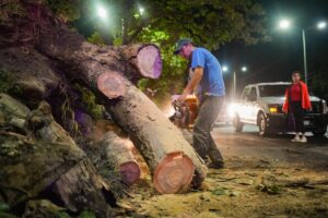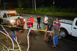 Personal de la Unidad Municipal de Protección Civil, Parques y Jardines, Alumbrado Público y Mantenimiento y Conservación del Municipio, así como cuadrillas de la Comisión Federal de Electricidad, trabajan para el restablecimiento del servicio de energía eléctrica.