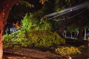 Personal de la Unidad Municipal de Protección Civil, Parques y Jardines, Alumbrado Público y Mantenimiento y Conservación del Municipio, así como cuadrillas de la Comisión Federal de Electricidad, trabajan para el restablecimiento del servicio de energía eléctrica.