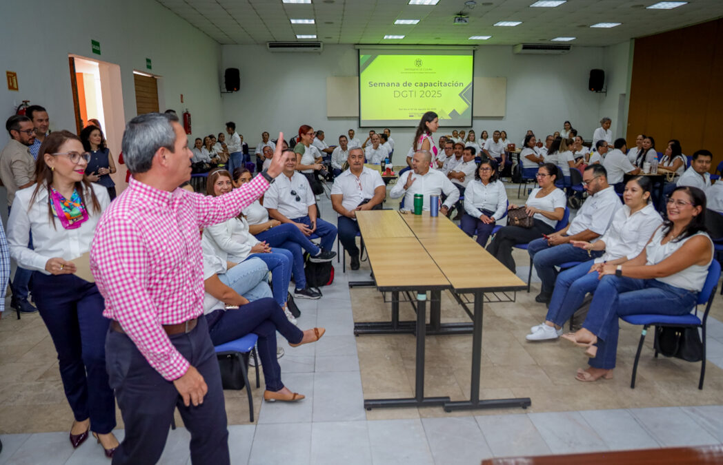 Con el propósito de fortalecer las habilidades y conocimientos del personal adscrito a la Dirección General de Tecnologías Informacionales, este miércoles el rector de la Universidad de Colima, Christian Torres Ortiz Zermeño, inauguró el curso-taller Tecnologías Informacionales: Personas que Transforman Espacios.