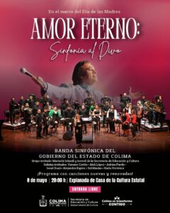 La Subsecretaría de Cultura del Gobierno del Estado de Colima que preside la mandataria Indira Vizcaíno Silva prepara un programa especial para celebrar el Día de las Madres y, entre las diversas actividades, destaca el concierto ‘Amor Eterno: Sinfonía al Divo’ que ofrecerá la Banda Sinfónica del Gobierno del Estado el viernes 8 de mayo, en la explanada de Casa de la Cultura Estatal.