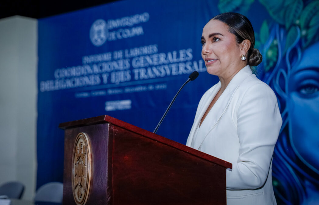 Este lunes por la mañana, en el Paraninfo Universitario, la Dra. Cintia Karina Rojas Mayorga, directora del Centro Universitario de Gestión Ambiental (CEUGEA) de la Universidad de Colima, rindió su informe de labores correspondiente a 2025, en el que destacó el trabajo colectivo realizado en materia de gestión ambiental, sostenibilidad, equidad y proyección futura de la casa de estudios.