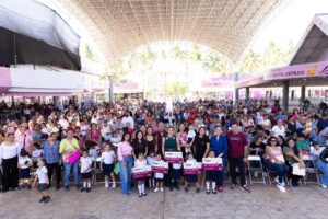 Se entregaron tarjetas a 996 beneficiarias y beneficiarios de 103 planteles públicos de preescolar de ambos municipios, con inversión superior a 6.5 millones de pesos. En el evento participaron la secretaria de Bienestar, Inclusión Social y Mujeres, Viridiana Valencia Vargas; el secretario de Educación y Cultura, Adolfo Núñez González; y la subsecretaria de Educación, Katia Paola Vázquez Solórzano, así como representantes populares municipales, estatales y federales.