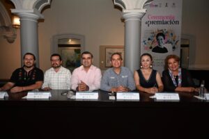Colima, Col., 16 de diciembre de 2025.- Con el objetivo de reconocer el talento literario y creativo de participantes de distintas edades y regiones del país, se llevó a cabo la entrega de galardones del Primer Festival Nacional Griselda Álvarez Ponce de León, acto encabezado por el presidente municipal de Colima, Riult Rivera Gutiérrez; el rector de la Universidad de Colima, Christian Jorge Torres Ortiz Zermeño, y la coordinadora del Colectivo Griselda Álvarez, Pastora Ferraez, en el Salón Vitral de la Pinacoteca Universitaria.