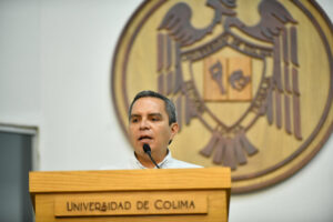 En el presídium también estuvieron el secretario general de la Universidad de Colima, Joel Nino Jr., y la titular de la Oficina de Enlace Educativo de la SEP en Colima, Teresa de Jesús Ramírez.
