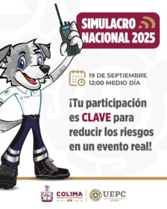 La Unidad Estatal de Protección Civil (UEPC) del Gobierno del Estado de Colima informa que la entidad participará en el Segundo Simulacro Nacional 2025, que se realizará el viernes 19 de septiembre a las 12:00 horas, que será bajo la hipótesis de un sismo magnitud 8.1 con epicentro en las costas de Michoacán, a trece kilómetros de profundidad.