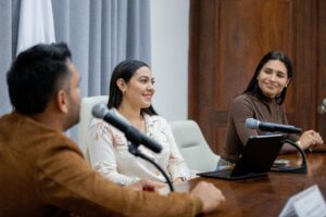 En esta reunión participaron también la titular de la Secretaría de Bienestar, Inclusión Social y Mujeres, Viridiana Valencia Vargas, y Fernanda Mosso Sánchez, enlace estatal del Imjuve.