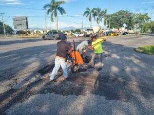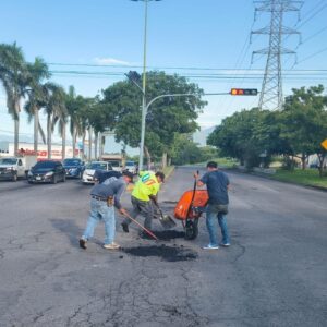 Del mismo modo se realizaron labores de bacheo en el cruce de avenida Pablo Silva García y la calle Doctor Miguel Galindo y en la esquina de Pablo Silva y Avenida Niños Héroes; asimismo, se taparon los baches sobre libramiento Griselda Álvarez en su cruce con avenida Orquídeas.