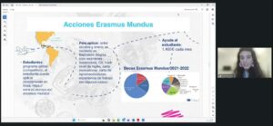 Martina Bo -de manera virtual- y Gabriel Cáceres -de forma presencial- compartieron con estudiantes y docentes sugerencias para lograr una movilidad académica exitosa. Su participación se englobó en el tema “Sesión informativa. Oportunidades de becas de estudio: Programas Erasmus+”.
