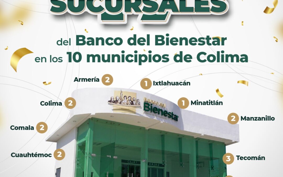 El Banco del Bienestar cuenta con 17 sucursales, distribuidas en los 10 municipios de la entidad, para atender a toda la población beneficiaria de los Programas para el Bienestar que otorga el Gobierno de México, informó la encargada del Despacho de la Delegación de Programas para el Bienestar Colima, Rocío Beltrán Rodríguez.