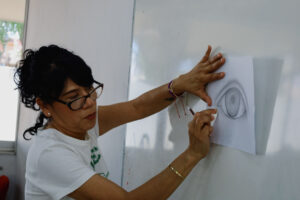 De manera paralela, la doctora Sandra Uribe Alvarado, artista plástica y docente universitaria, dirigió talleres de dibujo en ambos bachilleratos, donde el alumnado trabajó a partir de la observación como punto de partida. Mediante ejercicios guiados, exploraron el trazo, las proporciones y el manejo de luces y sombras, desarrollando atención al detalle y habilidades técnicas básicas.