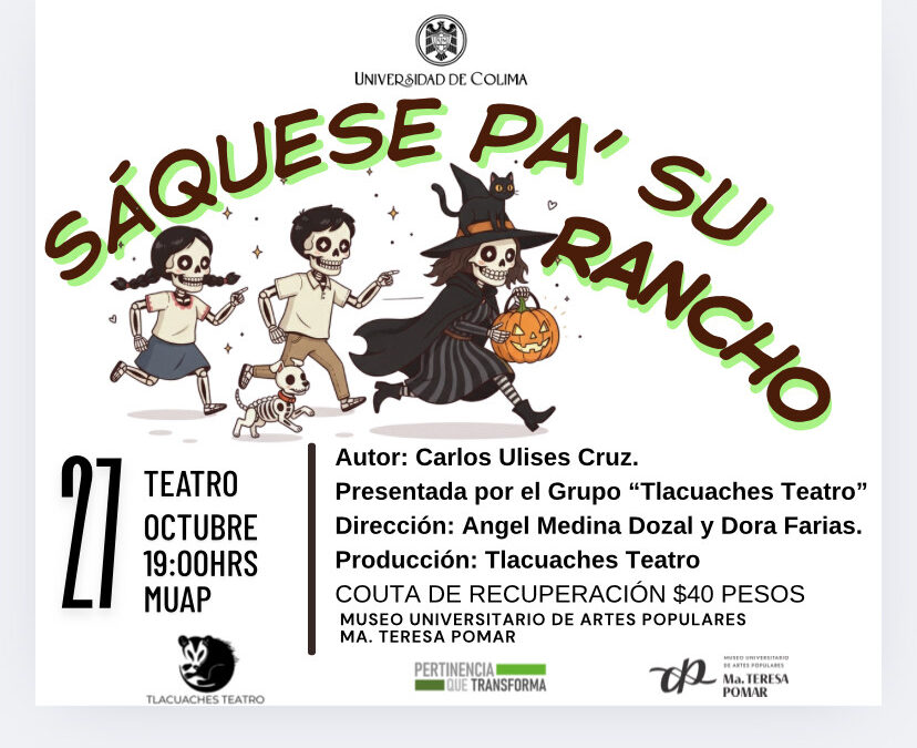 El programa inicia el lunes 27 con la puesta en escena: “Sáquese pa’ su rancho”, del grupo Tlacuaches Teatro, bajo la dirección de Ángel Medina Dozal y Dora Farías. La obra, escrita por Carlos Ulises Cruz, combina humor, crítica social y estética popular.