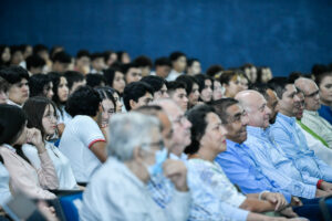 Posteriormente, a las 9:00 horas, se llevó a cabo la ceremonia inaugural en el Paraninfo Universitario, donde el rector ofreció un mensaje y una charla a las y los alumnos, tanto a quienes asistieron de manera presencial como a quienes se conectaron en línea desde sus aulas.