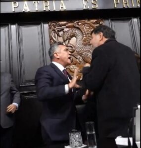 “Por tanto reprobamos este comportamiento inadmisible e indigno, con estas acciones Moreno Cárdenas y los representantes de la oposición que los secundaron en este indigno y antidemocrático actuar, demuestra una vez más estar del lado de los intolerantes, autoritarios y violentos, que primero agreden y luego se dicen víctimas”, finalizó el comunicado.