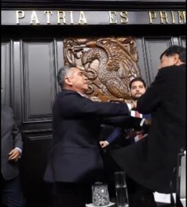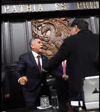 El comunicado morenista refirió que el también líder del priismo nacional, Alejandro Moreno, “agredió cobardemente al presidente de la mesa directiva del Senado de la República, Gerardo Fernández Noroña, así como a un trabajador de la Cámara”.