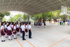 Las y los alumnos del 3ro. A, fueron los encargados de dirigir la ceremonia, iniciando con los honores a la bandera. Posteriormente se leyeron las efemérides más importantes de la semana y se reflexionó sobre el valor del patriotismo, destacando que, “Ser patriota implica conocer y valorar nuestra historia, tradiciones, raíces culturales y los símbolos que nos representan como país”.