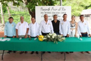 Núñez González destacó la profunda transformación que ha experimentado la educación rural en esta comunidad desde 1925, año en que se registran los primeros esfuerzos formales por llevar la enseñanza a hijas e hijos de jornaleros y trabajadores de la Hacienda Paso del Río, gracias a la iniciativa del administrador Stefano Gherzi, que permitió que para 1927, se estableciera una escuela formal que llevó el nombre de Albert J. Oschner -propietario de la hacienda-, y que posteriormente adoptaría el nombre de escuela primaria ‘Juan José Ríos’, en honor al destacado revolucionario y exgobernador colimense.